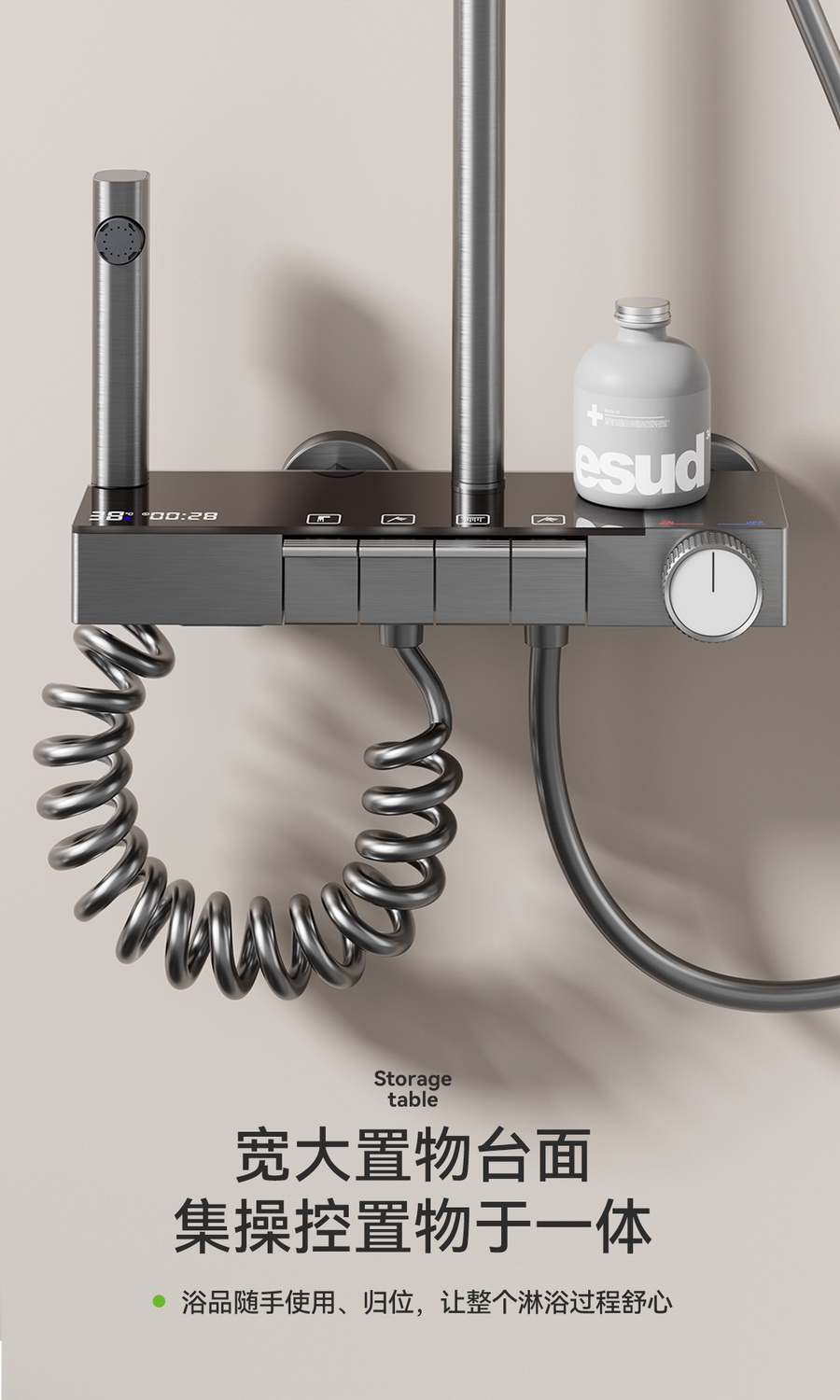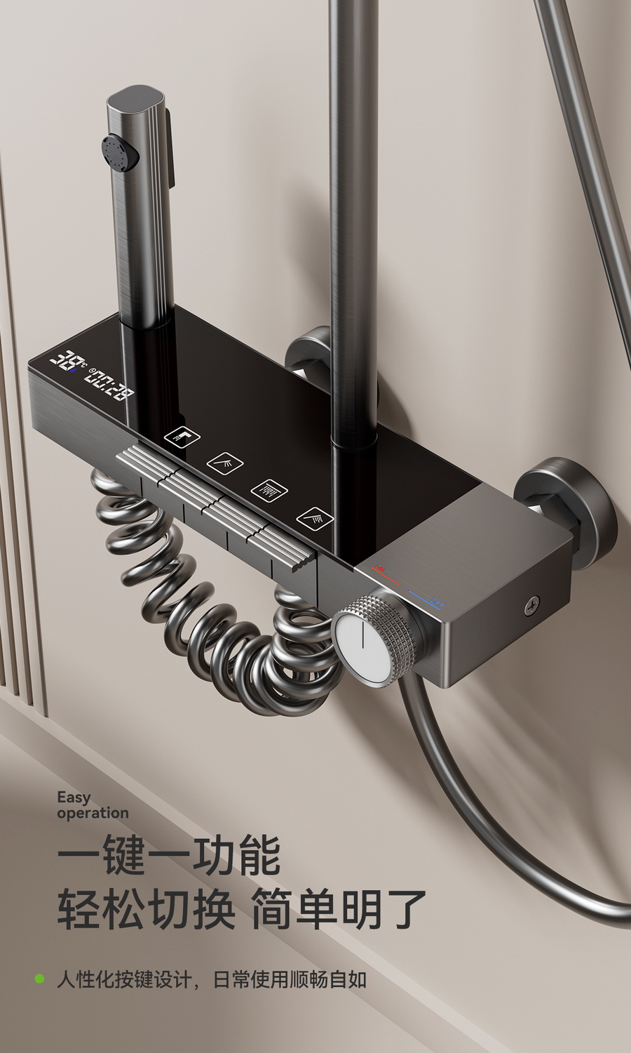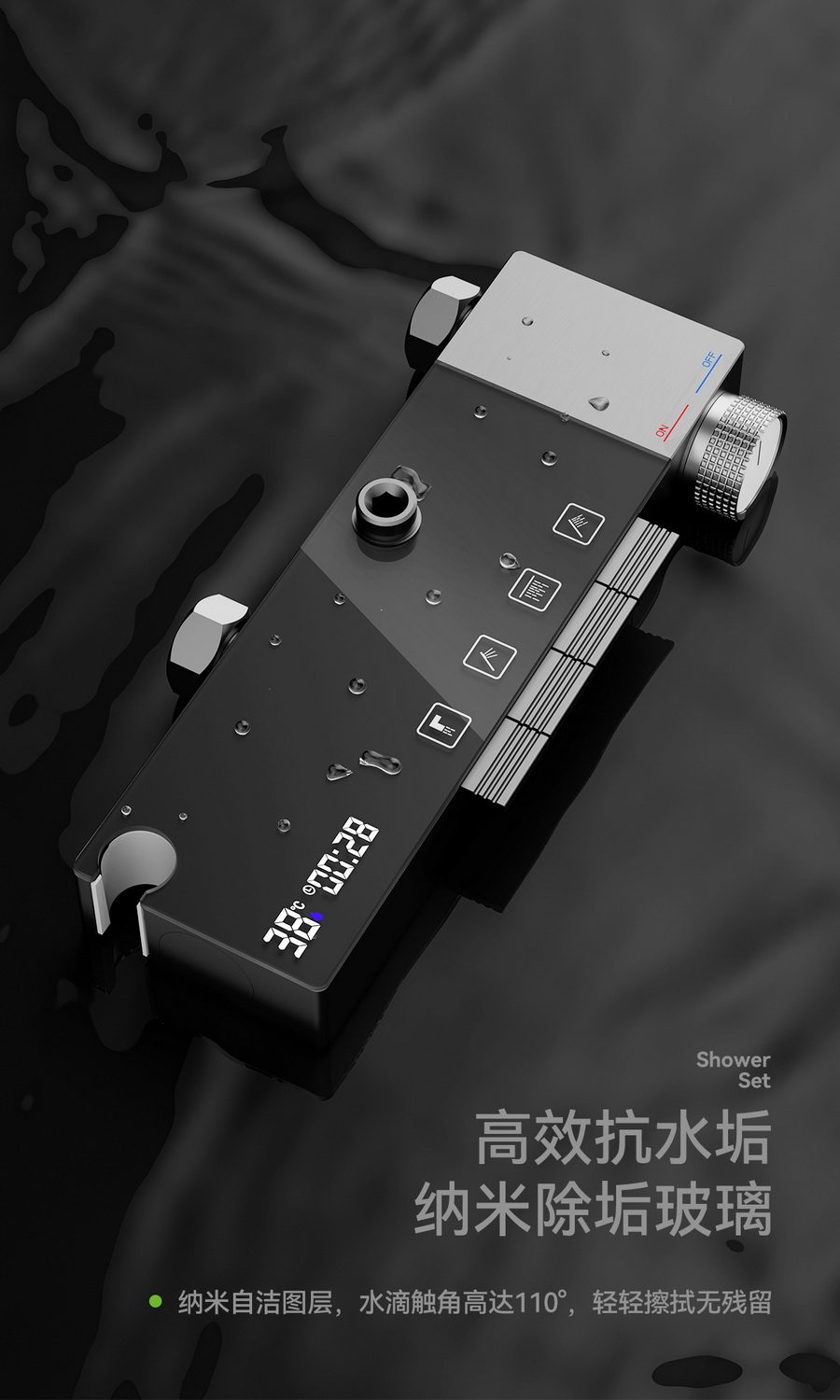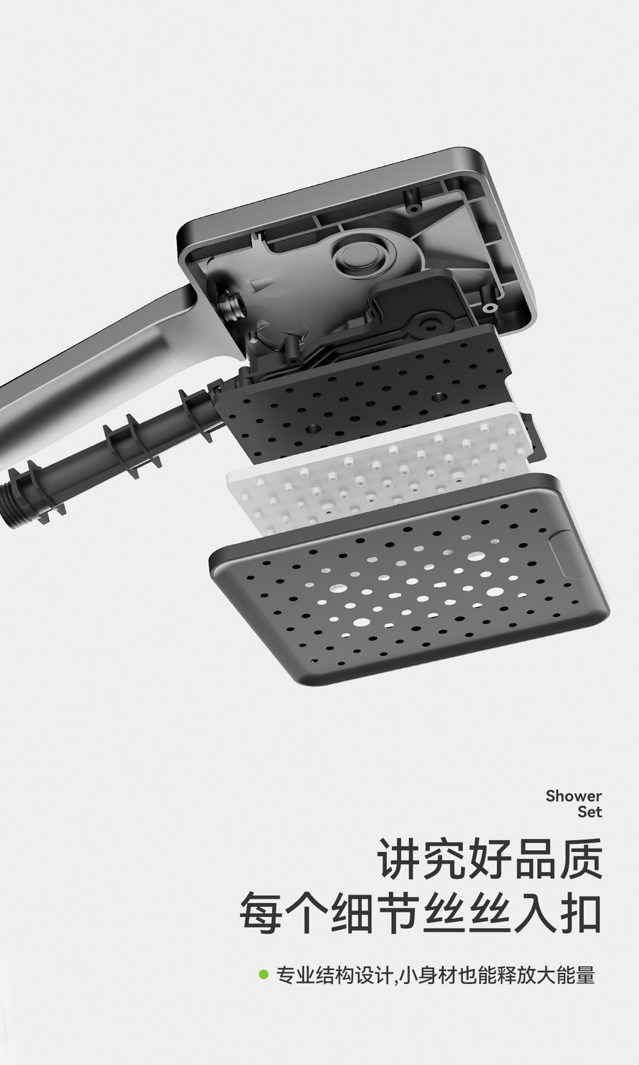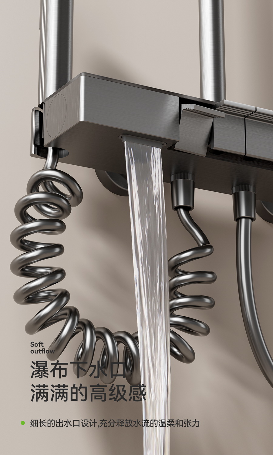 纳米自洁图层,荷叶仿生科技,高效疏水,轻轻擦拭无残留,疏水性能卓越,仿生瀑布下出水,柔和出水,冲洗不溅水,强劲增压喷枪,满足日常冲洗马桶、拖把、地面等清洗任务,打扫卫生无死角。